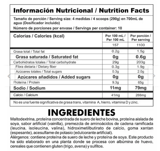GAINZ 1100 HMB & BCAA – High Performance Mass Gainer 6.4 lb (Vainilla)