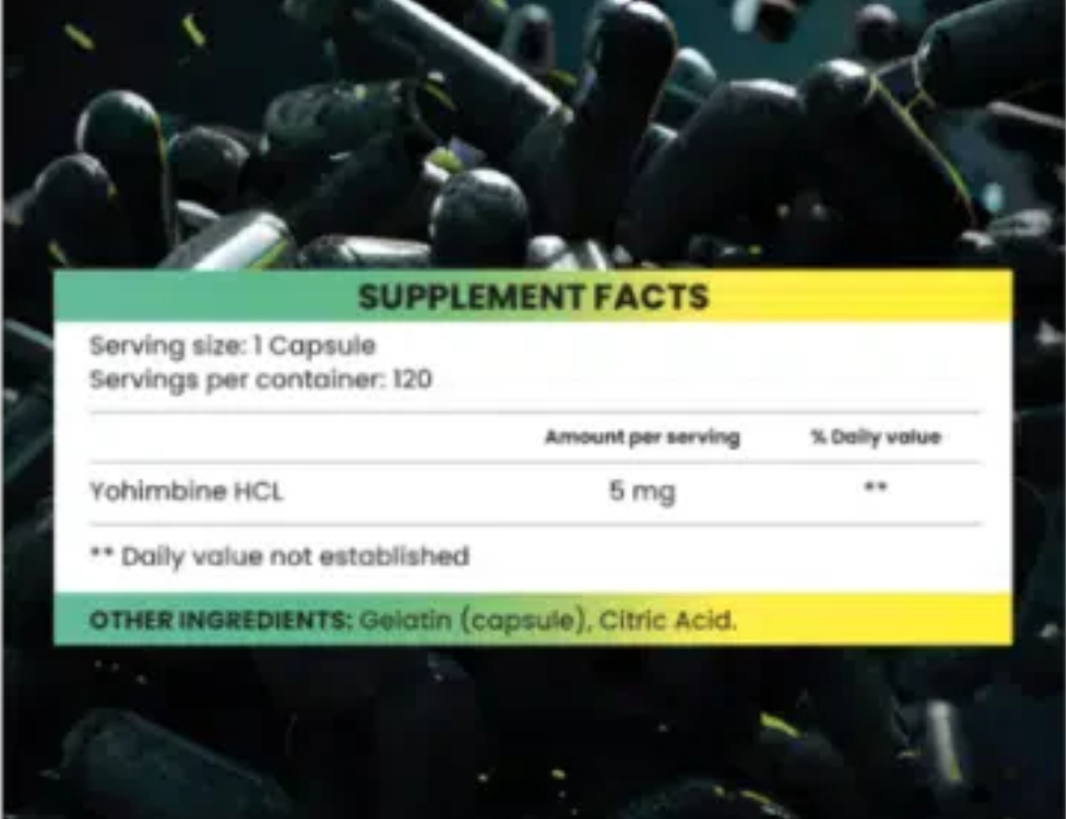 Porción: 1 cápsula (2,5 mg de Yohimbina HCL)